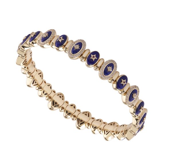 14K Gold Stretchable Bangle Featuring Lapis and Diamonds SKU: BNG111DL